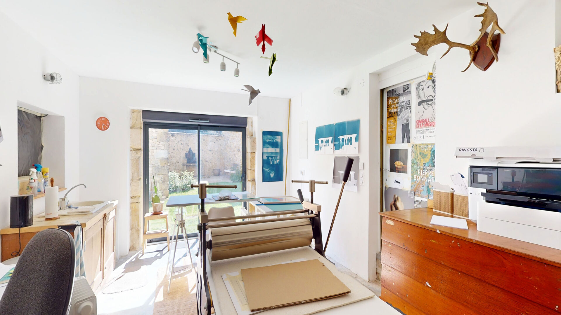 - Pièce(s) /atelier donnant sur l'extérieur avec sol béton et baie vitrée avec store roulant électrique de 18 m².