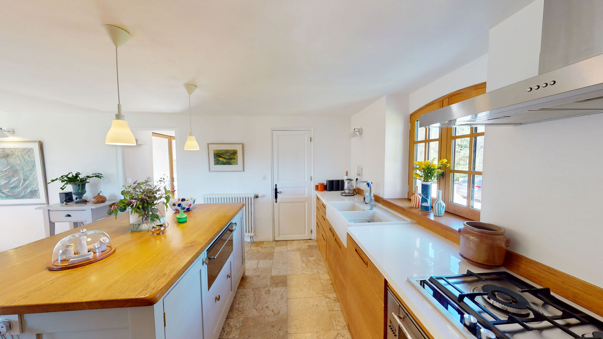 - Cuisine(s) avec coin repas, sol en travertin de 30 m².