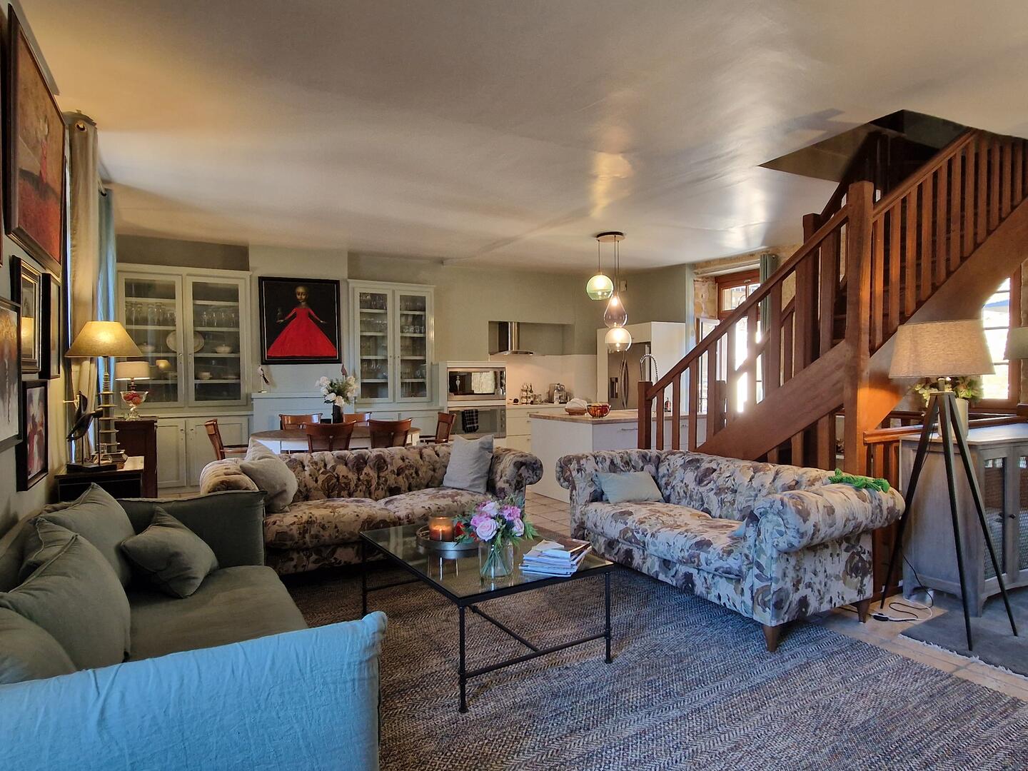 - Pièce(s) à vivre 66m2 cuisine aménagée et équipée, Salle à manger, Salon avec cheminée et poele. escalier