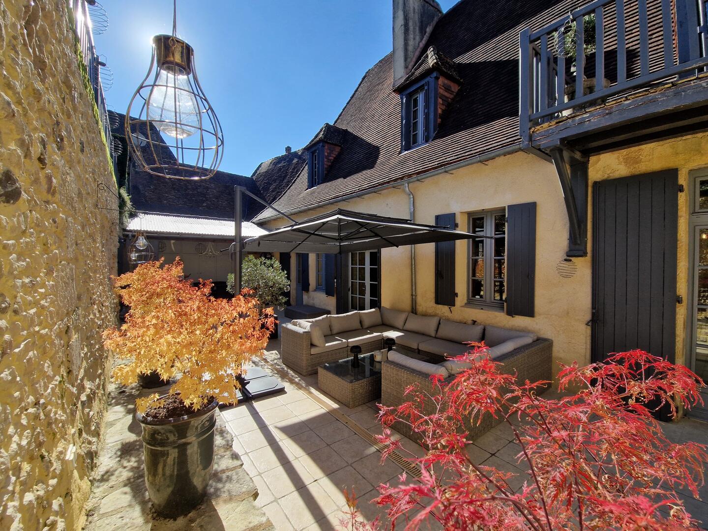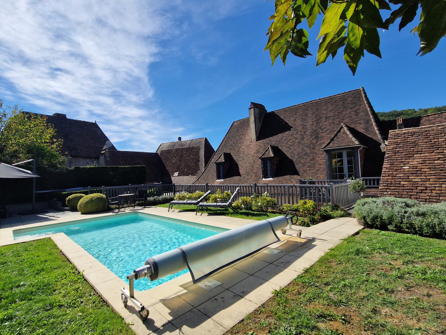 Demeure périgordine rénovée avec piscine et jardin clos dans village avec commerces.