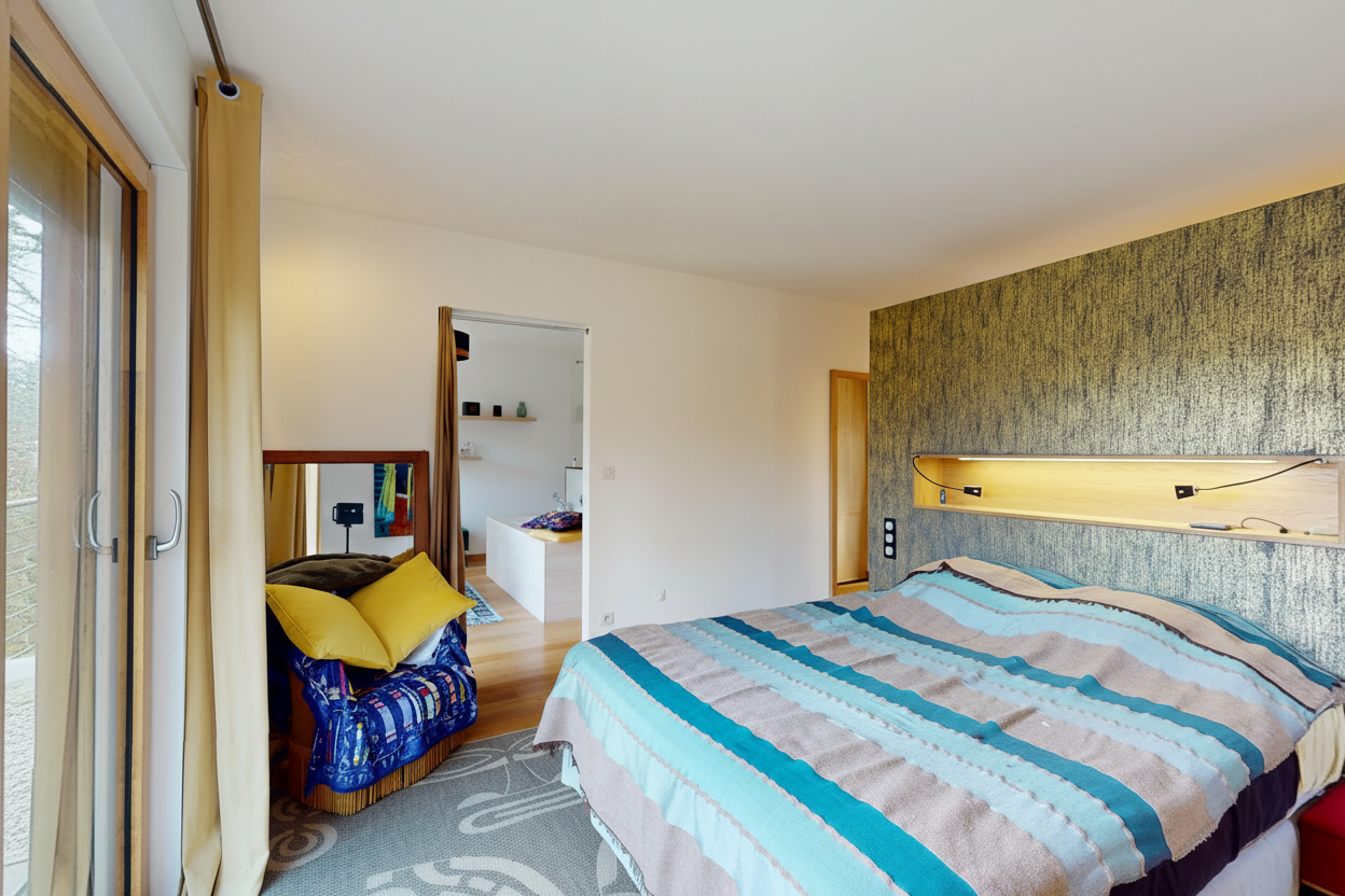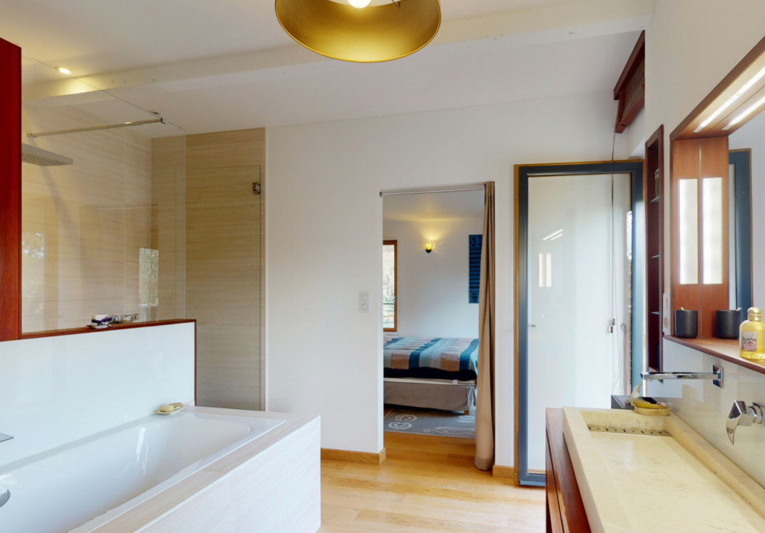 - Chambre(s) : grande suite parentale avec dressing et salle de bains, toilettes et chambre avec salle d'eau/toilettes.