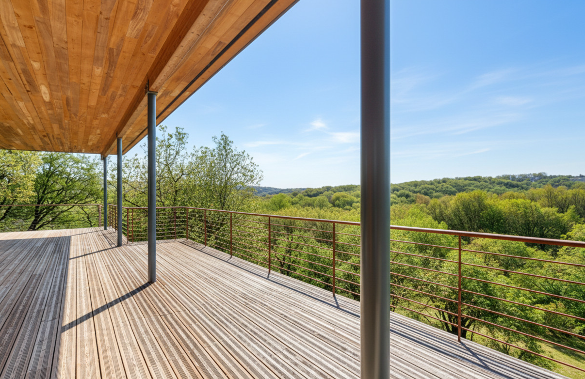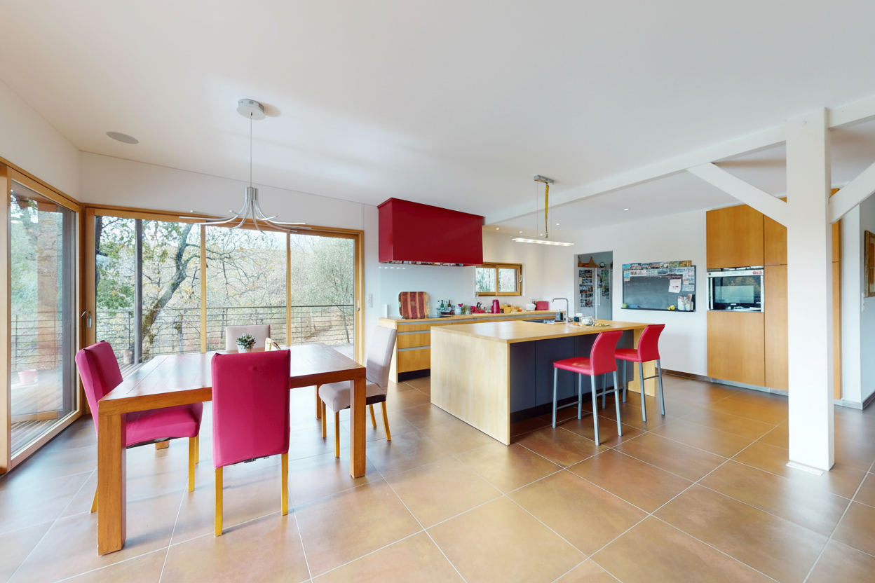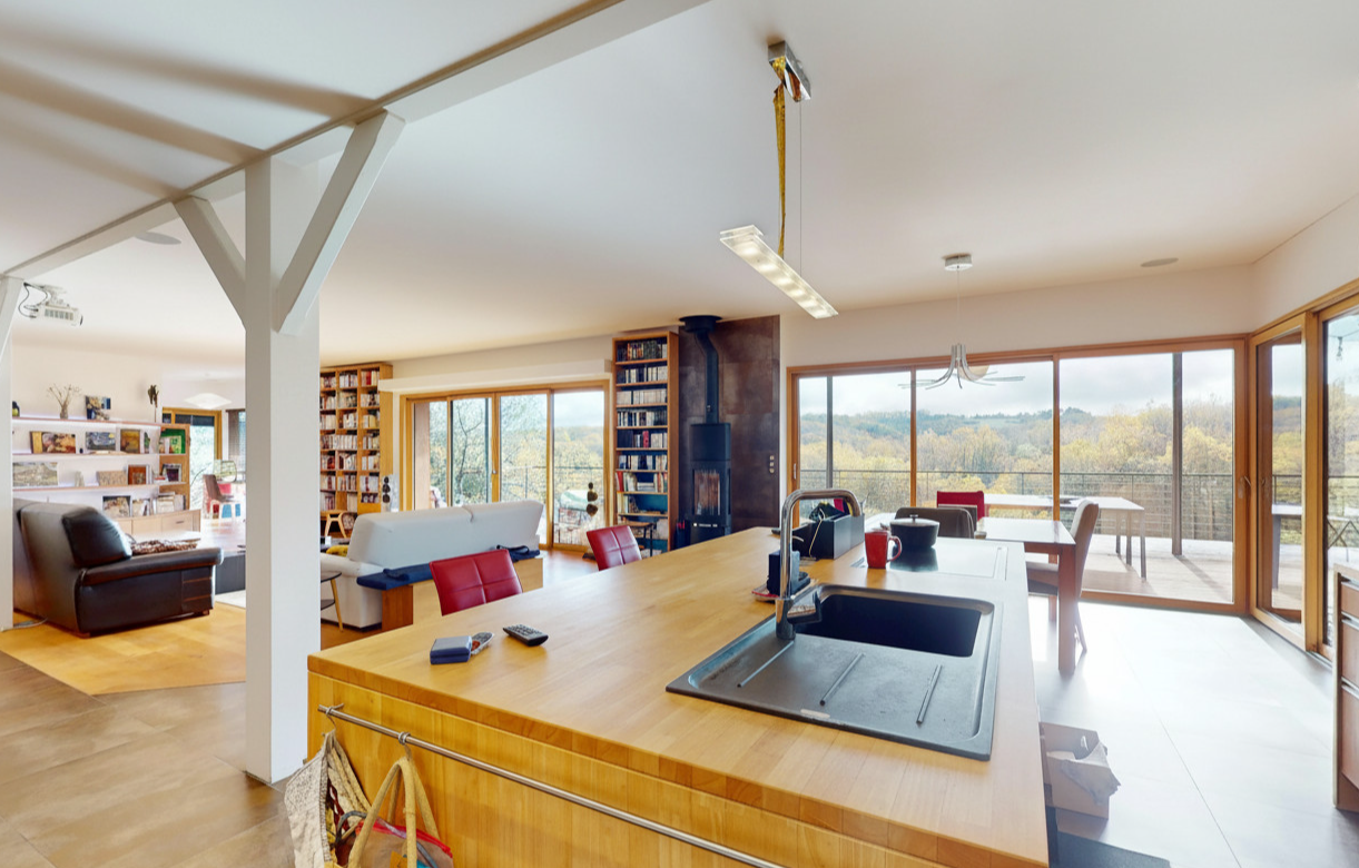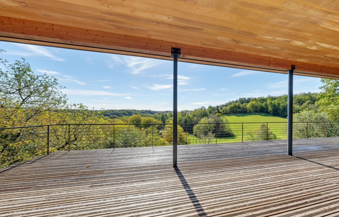 - Terrasse(s) avec superbe vue sur la nature, exposée plain sud, et qui double la surface de la maison en été.