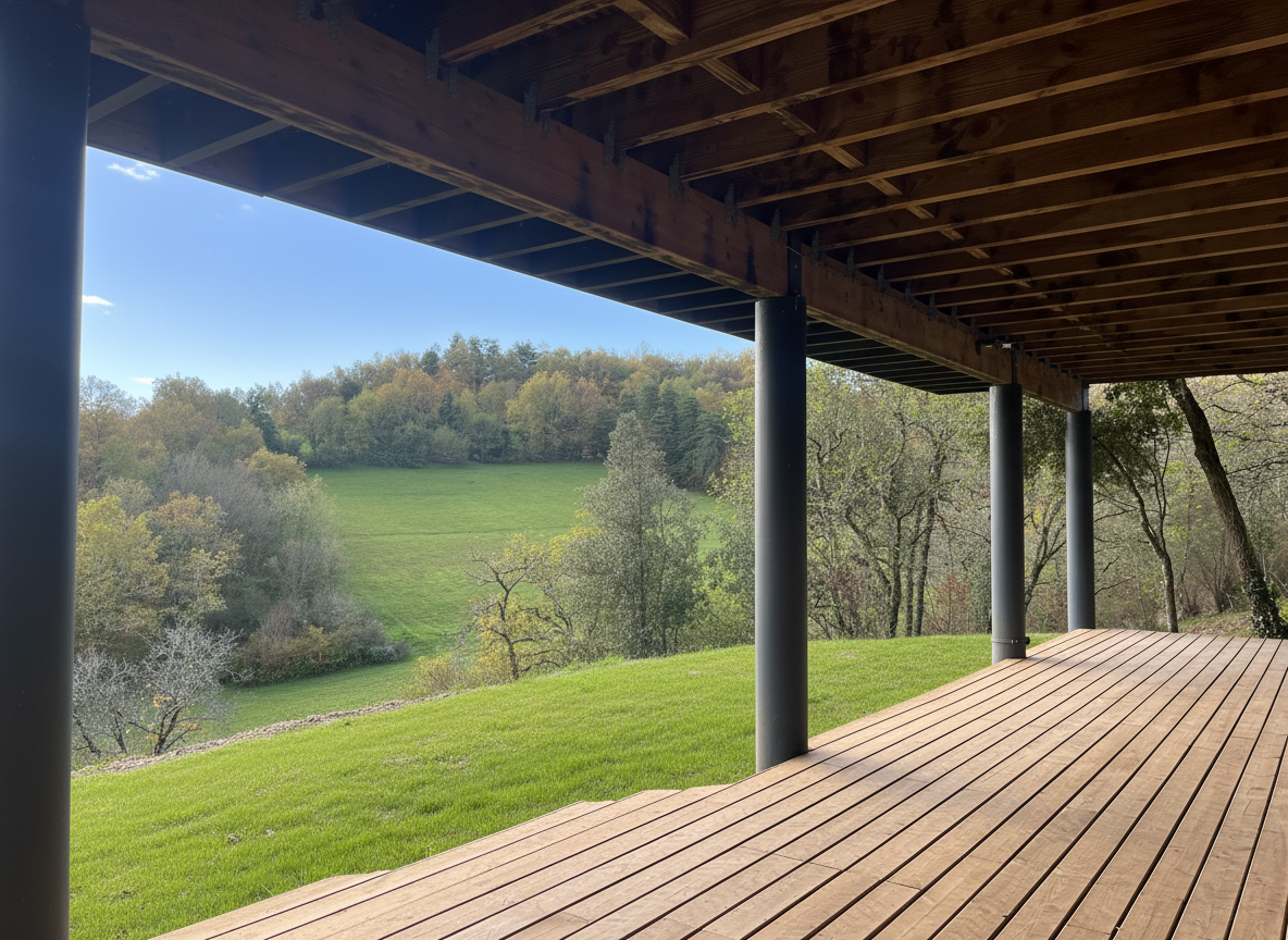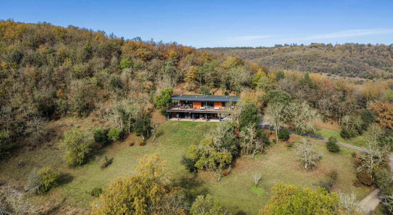 En Périgord Noir, à quelques minutes de Montignac-Lascaux, superbe maison d'architecte construite en bois sur plus de deux hectares de terrain. Vue exceptionnelle.