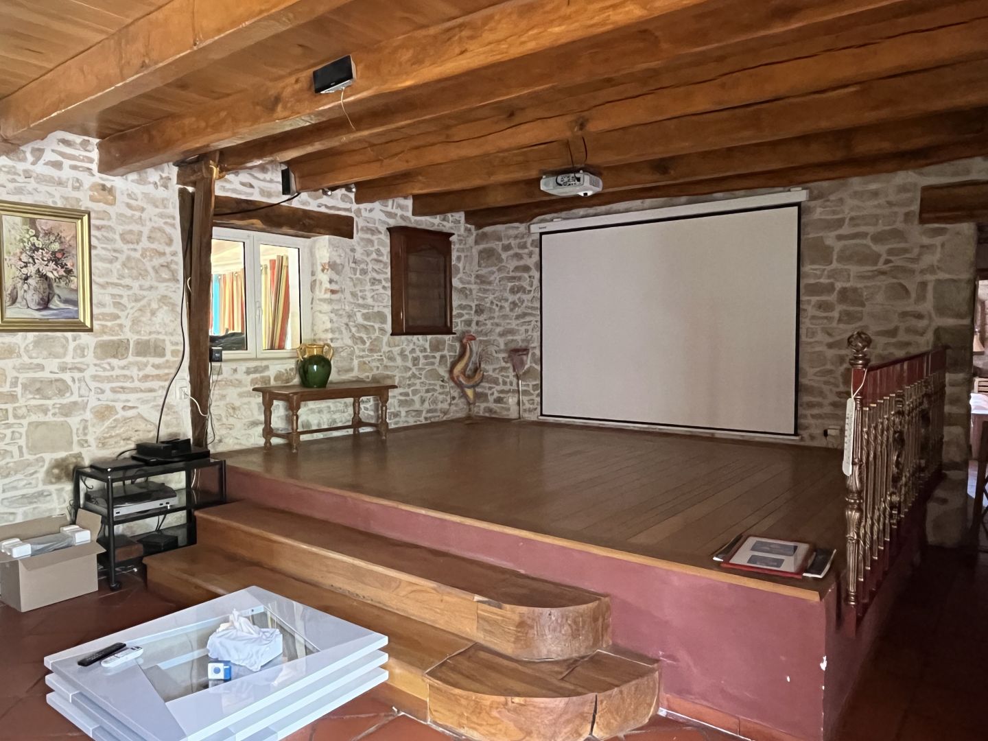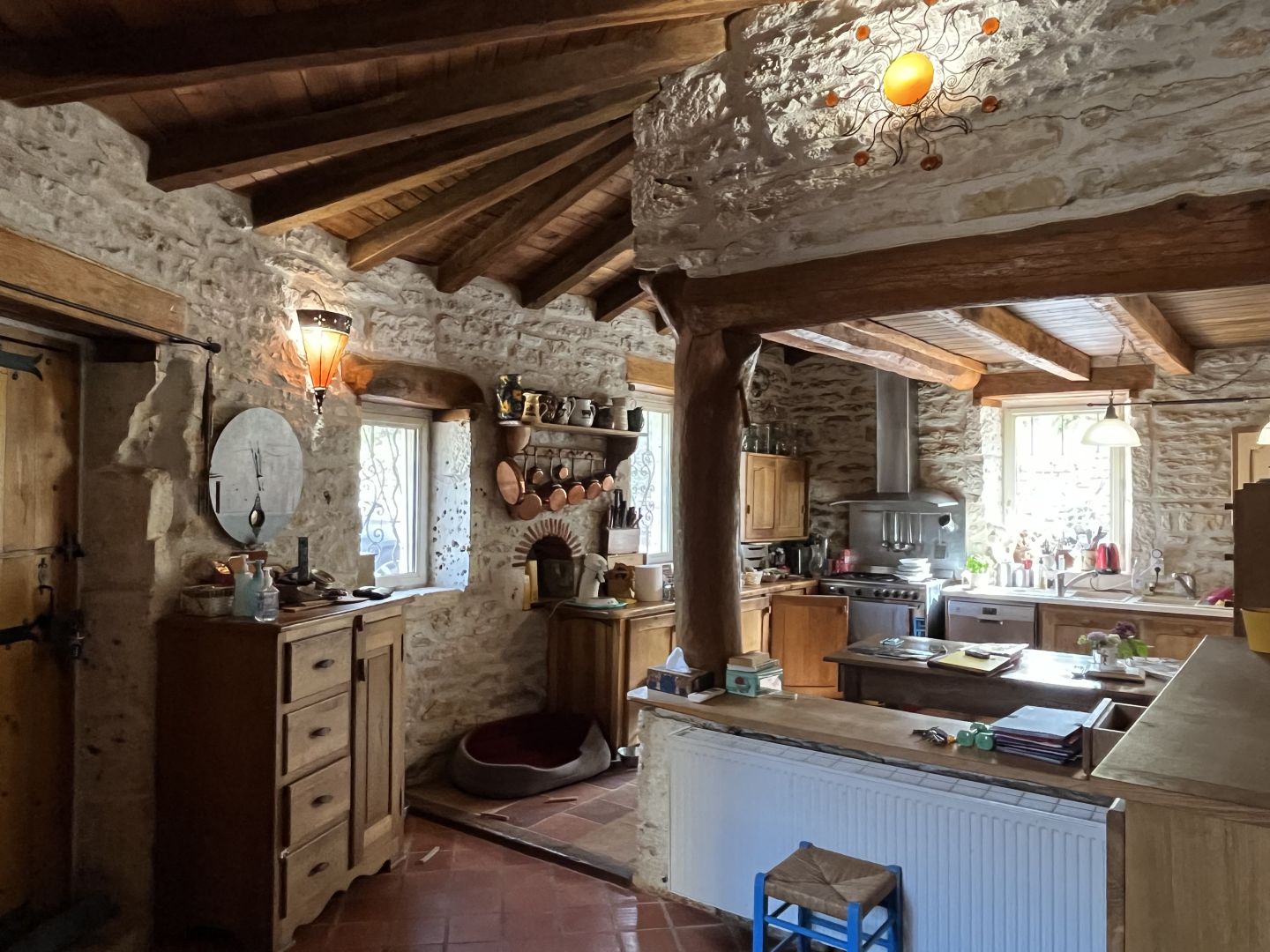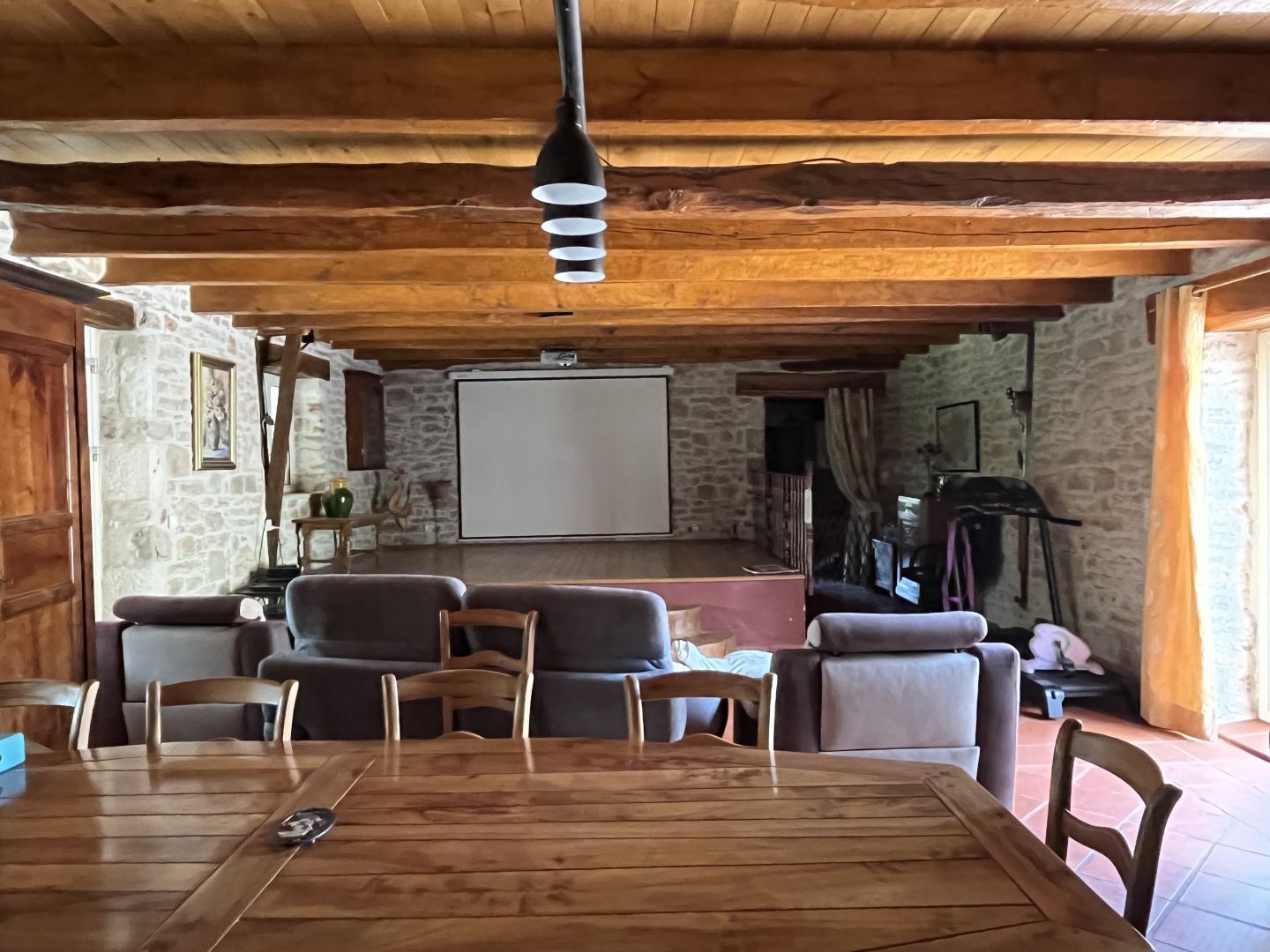 - Pièce(s) à vivre avec cheminée et poele à bois d'environ 70 m².