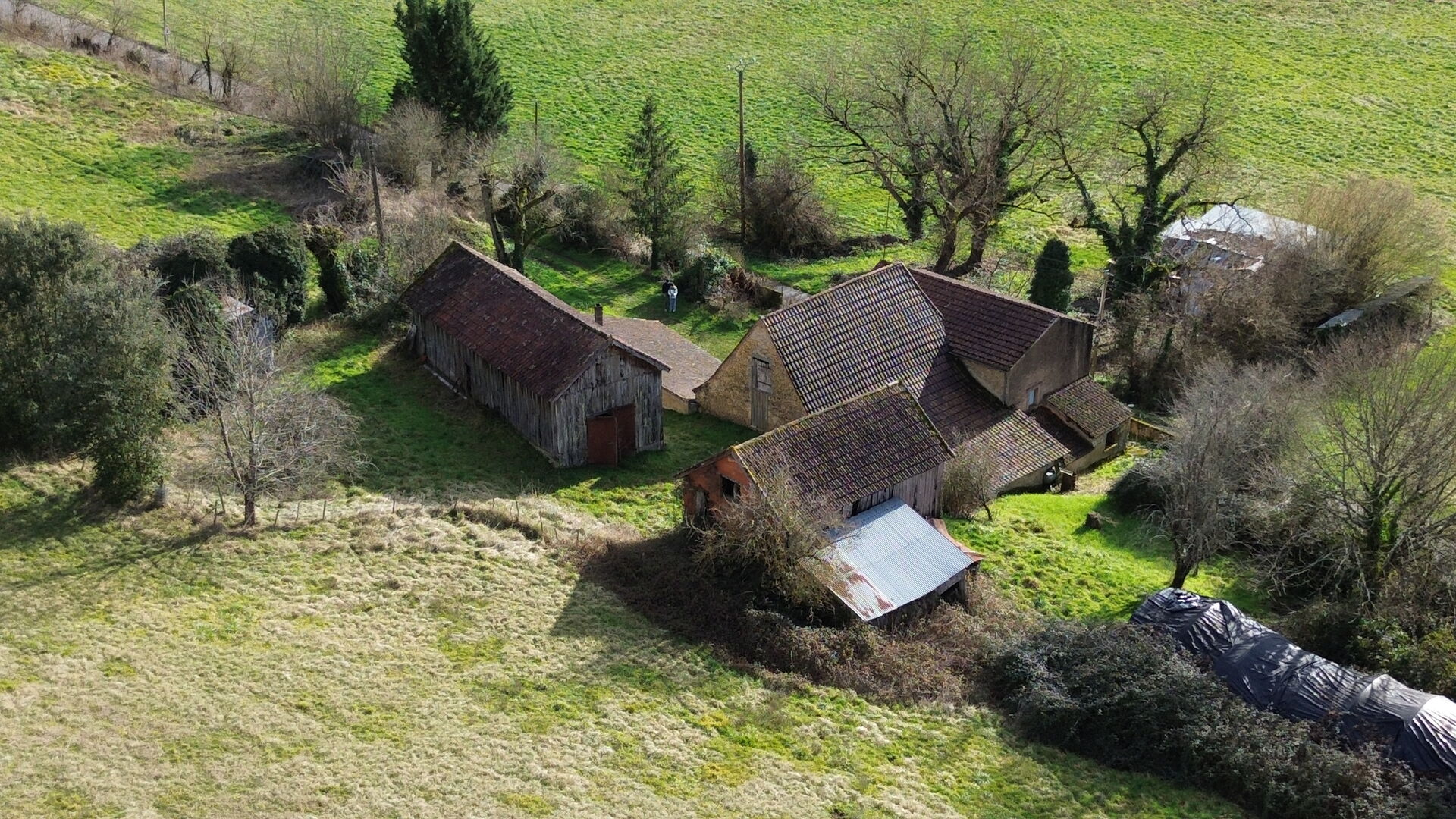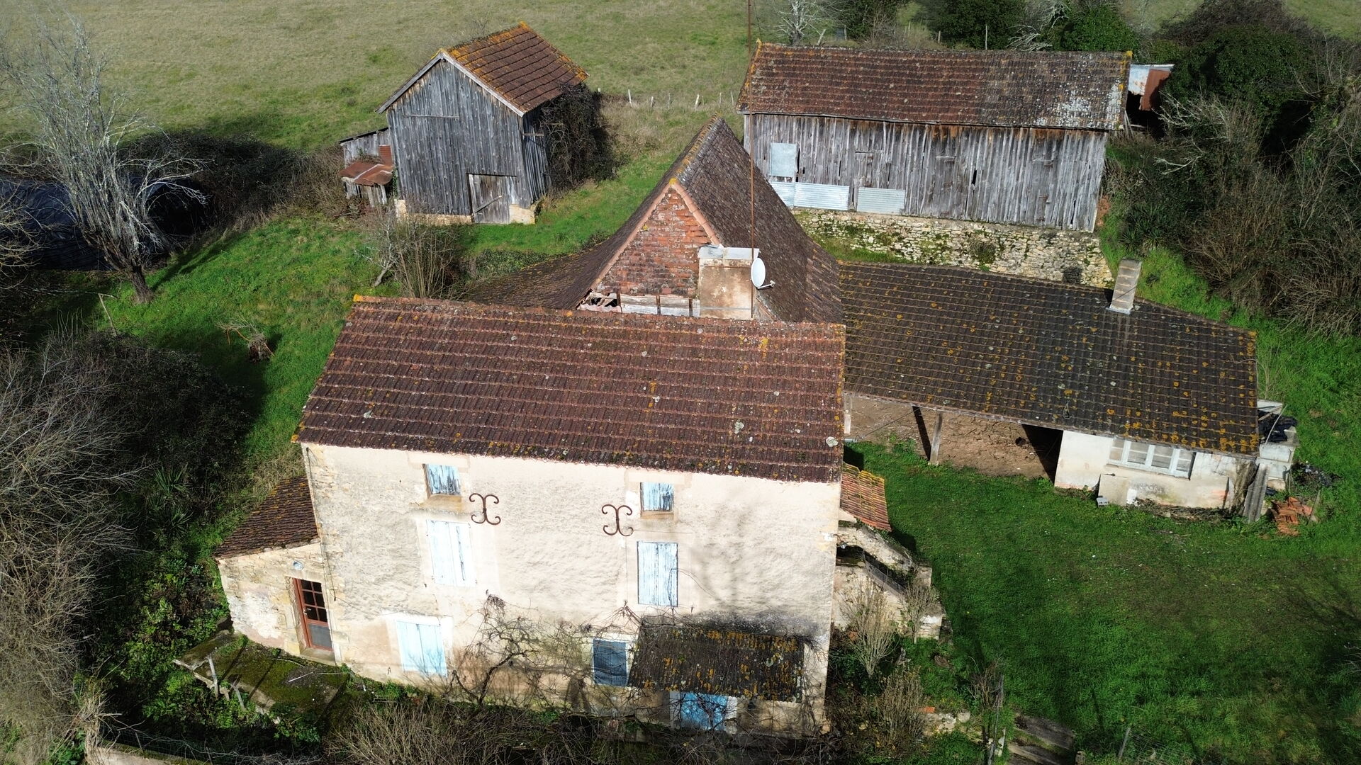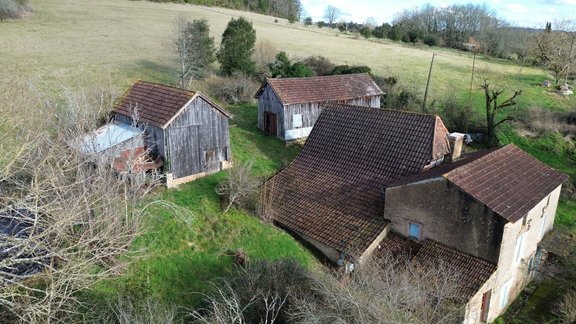 Petit corps de ferme à restaurer sur plus de 3 ha de terrain.