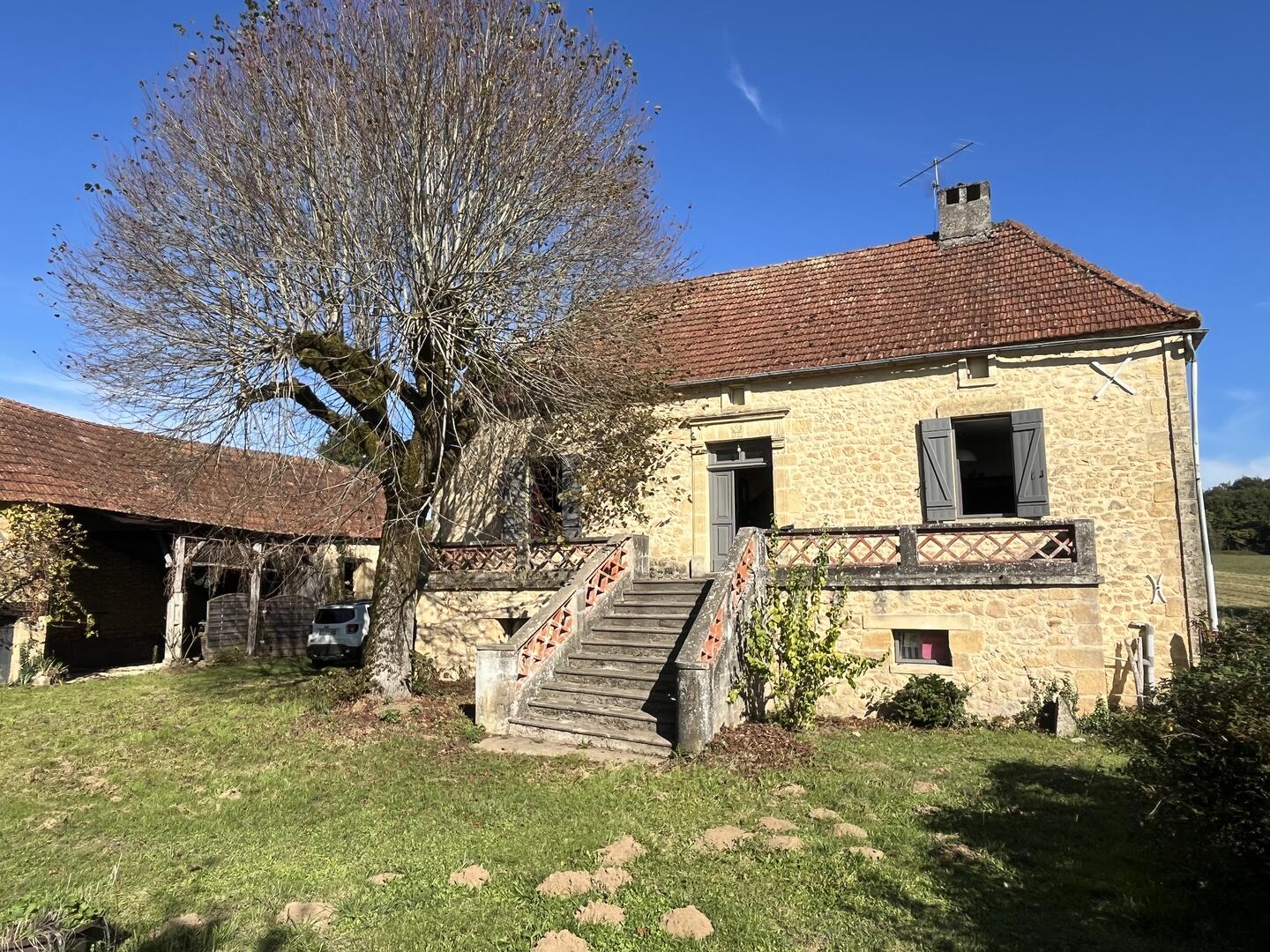 Au cœur de la vallée de la Dordogne, entre Sarlat et Souillac, non loin du petit village de Saint-Julien-de-Lampon, cette propriété se compose d'une maison en pierre construite sur cave, avec entrée, cuisine, séjour, trois chambres et une salle de bains. Les combles sont aménageables. Une belle terrasse en façade permet de profiter de la vue sur la cour et de l'ombre du tilleul. La maison dispose d'un chauffage central au gaz et de double vitrage. Idéale pour un usage de "maison de vacances", elle peut aussi devenir une résidence principale. La propriété s’étend sur environ deux hectares. A ce jour le terrain est entretenu par un agriculteur voisin. Le terrain sera libre si le prochain propriétaire veut l'utiliser, sinon, l'accord actuel peut continuer pour ne pas en avoir l'entretien. Les informations sur les risques auxquels ce bien est exposé sont disponibles sur le site Géorisques : www.georisques.gouv.fr