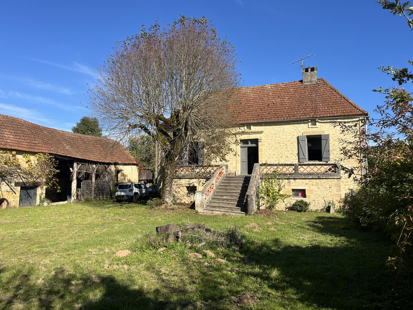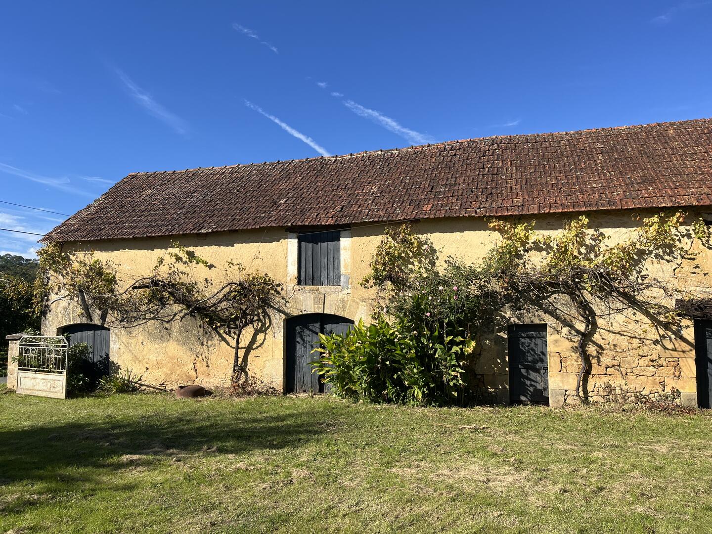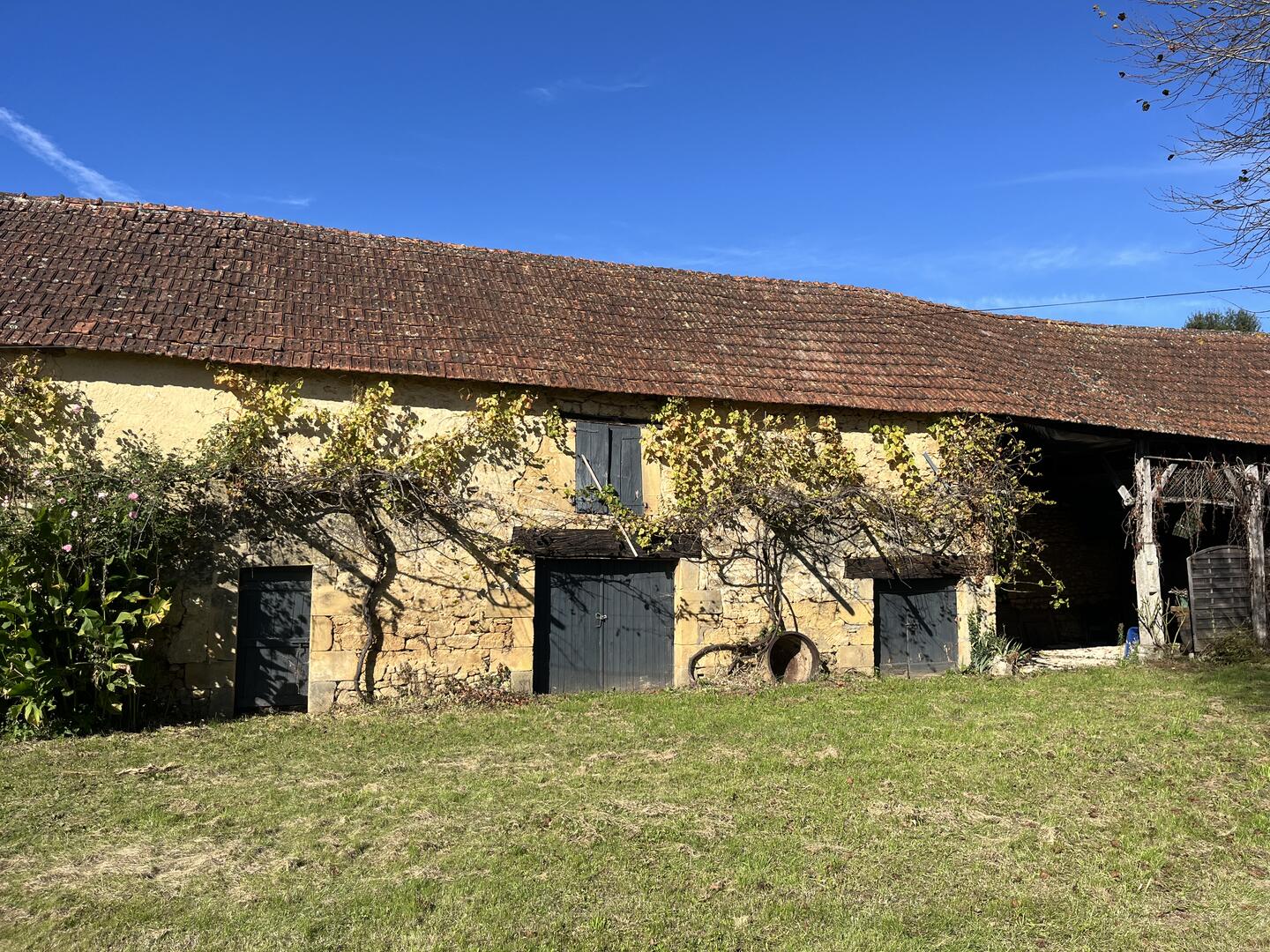 Proche de la rivière Dordogne, entre Sarlat et Souillac, bel ensemble sur deux hectares avec maison principale et grande grange.