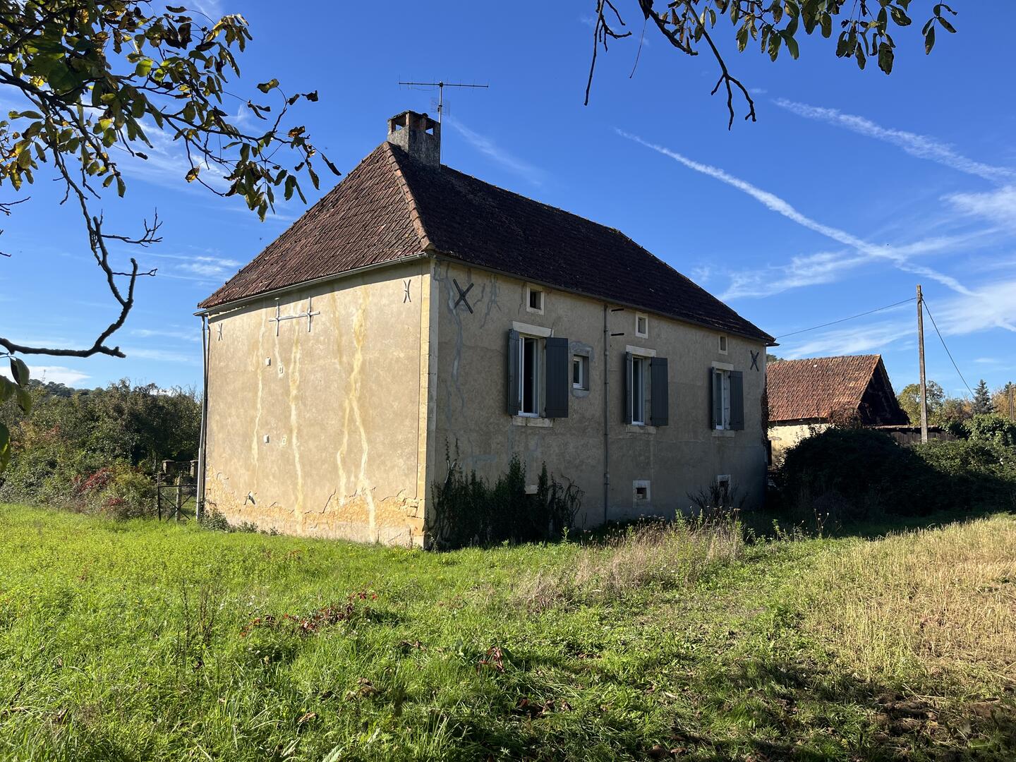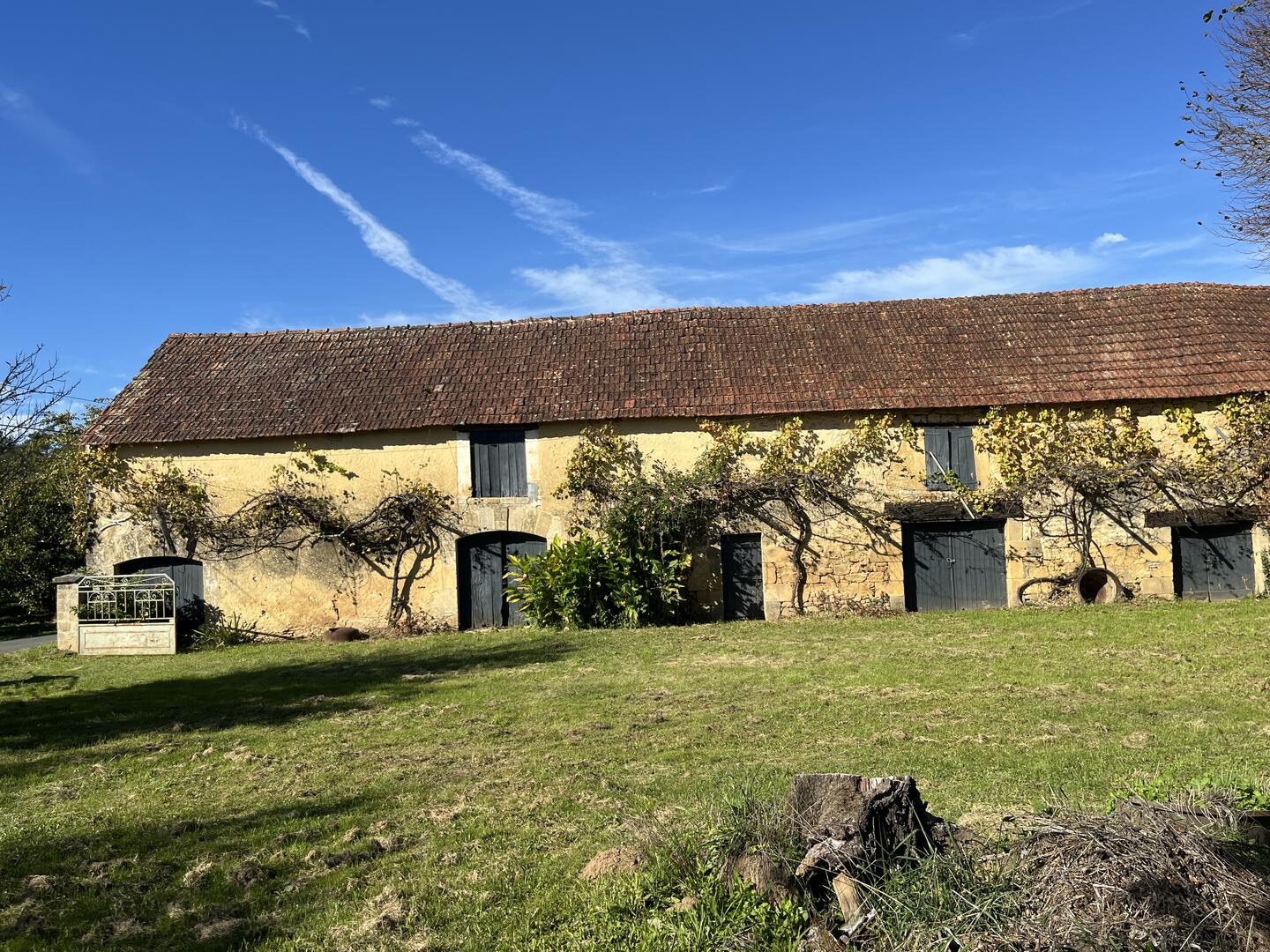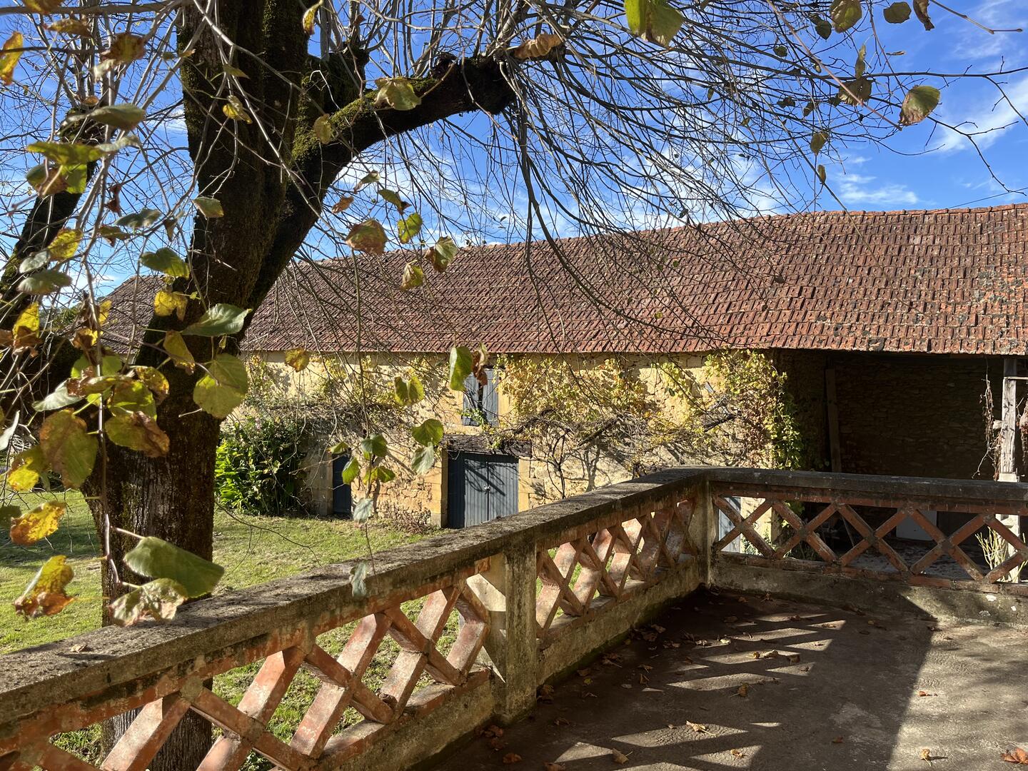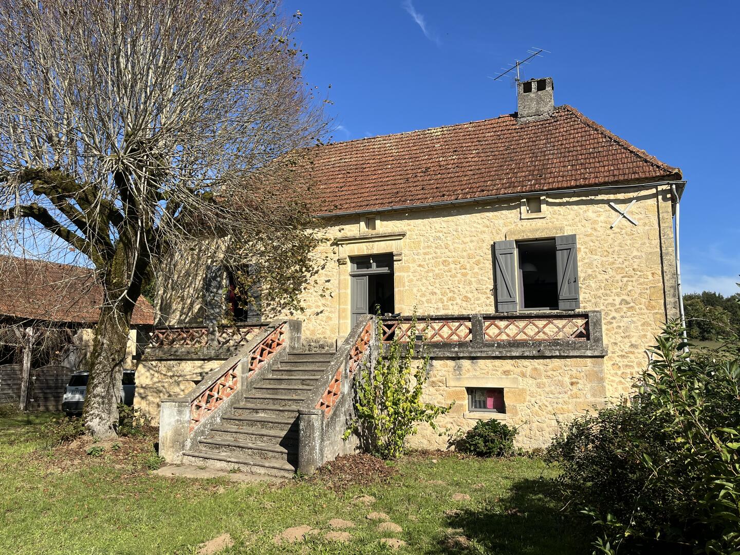 Proche de la rivière Dordogne, entre Sarlat et Souillac, bel ensemble sur deux hectares avec maison principale et grande grange.
