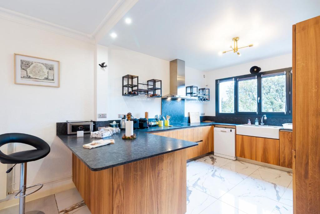 Située sur les hauteurs, dans un quartier résidentiel de Sarlat, à l’orée de la forêt et à proximité des commerces, cette maison familiale claire et spacieuse, entièrement rénovée en 2021, offre une surface généreuse ainsi qu’un appartement indépendant ( 215 m2 au total) et une piscine chauffée. Elle dispose d'une entrée avec WC invités , une pièce de vie de 72 m² avec une cuisine ouverte de très belle qualité, une salle à manger et un salon doté d’une magnifique cheminée en pierre ouverte avec un accès direct à une terrasse intime. Au demi niveau un palier dessert deux chambres ainsi qu’une salle de bains avec WC ; Au premier étage se trouvent une grande chambre en suite avec salle d’eau et WC , deux autres chambres avec placards et une salle d’eau supplémentaire. Le garage de belle hauteur permet d’accueillir plusieurs véhicules. Un appartement indépendant de plain pied de type T2 en parfait état complète l’ensemble et bénéficie également d’une terrasse . Les extérieurs s’étendent sur environ 1000 m² et offrent plusieurs terrasses et une piscine chauffée. Double vitrage, chauffage pompe à chaleur, tout à l'égout Les informations sur les risques auxquels ce bien est exposé sont disponibles sur le site Géorisques : www.georisques.gouv.fr