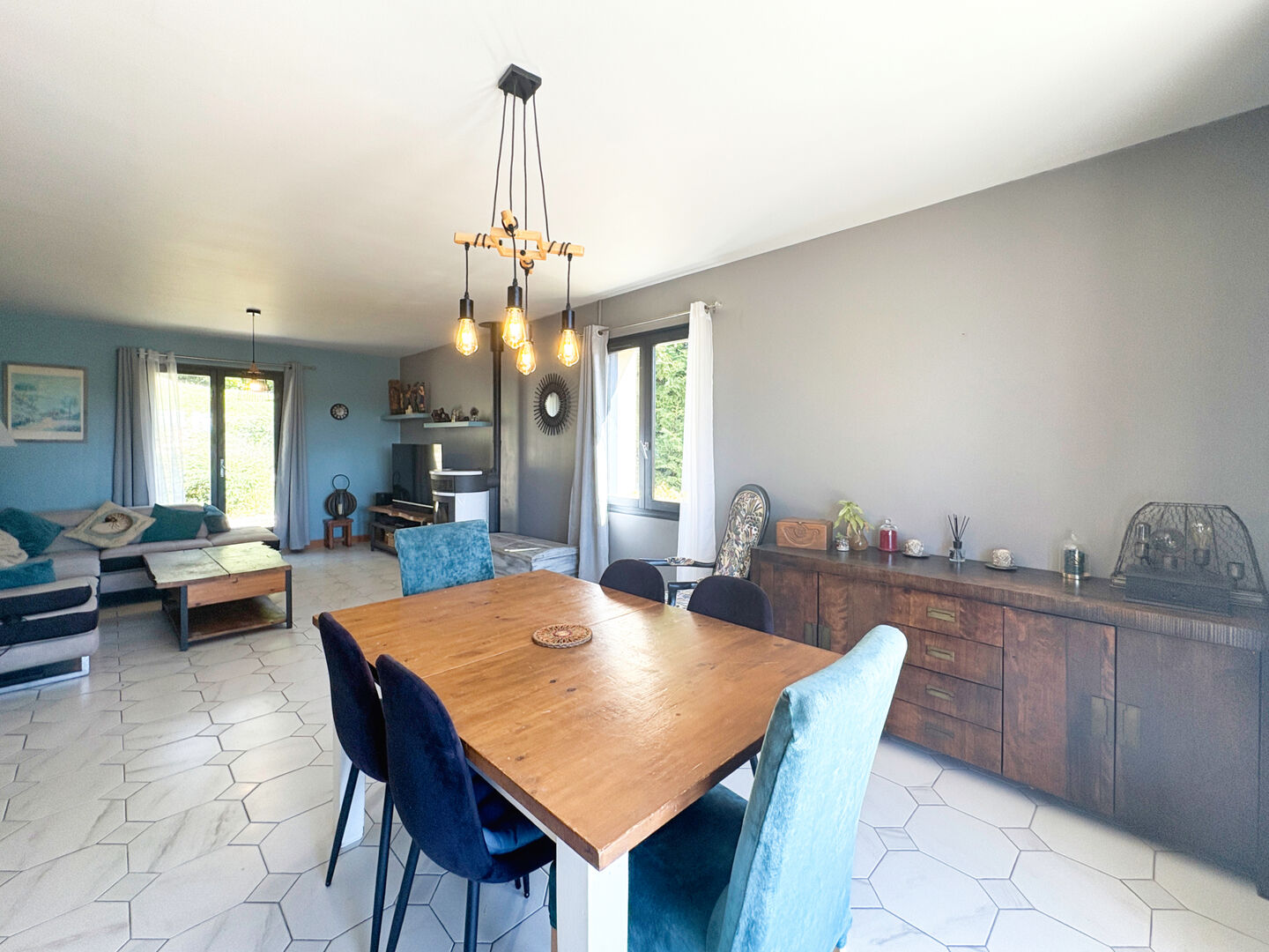 - Pièce(s) à vivre de 32,36m2 avec poêle à granules