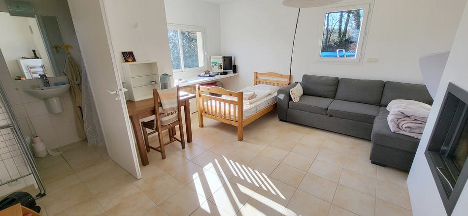 - Séjour(s) 40 m² incluant espace cuisine - poêle bois