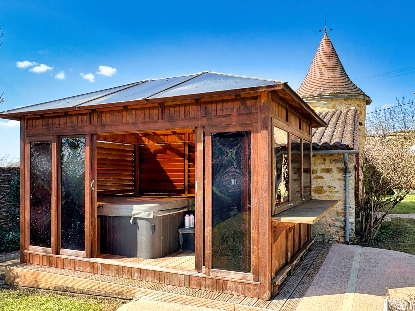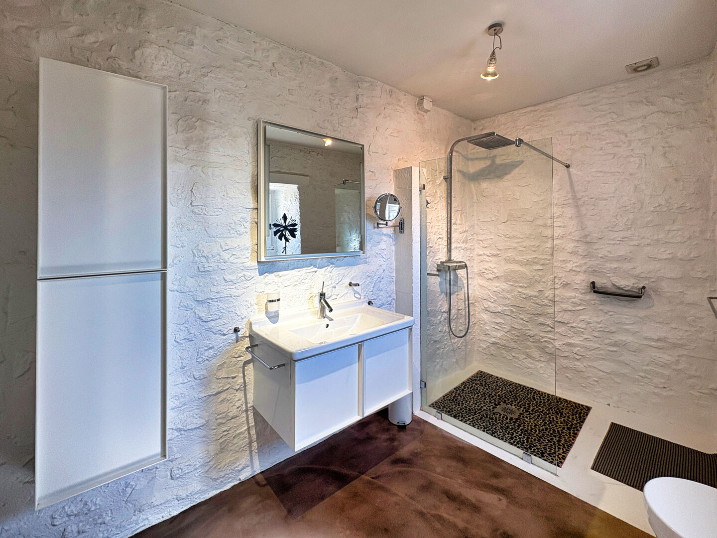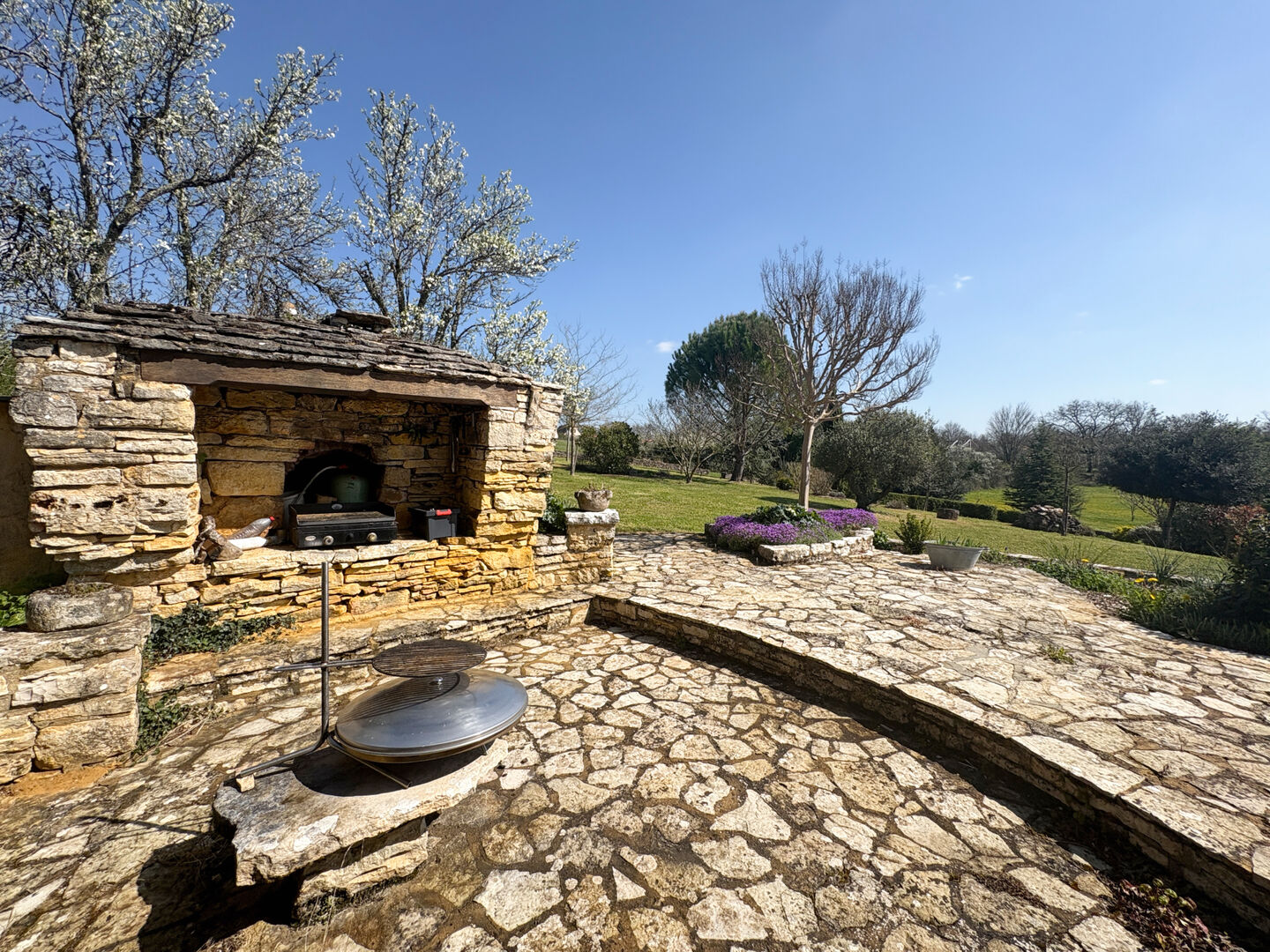 A une vingtaine de minutes au sud de Sarlat et à 5 minutes des premiers commerces, très belle propriété avec maison d'amis implantée sur un terrain arboré et paysagé d'une hectare avec plus de 100 chênes truffiers, une piscine chauffée et un espace jacuzzi. La maison principale offre d'une pièce à vivre de 44 m2 avec cuisine ouverte et salon avec cheminée, deux chambres, une salle d’eau avec WC; À l’étage, une vaste chambre mansardée de 24 m2 - dortoir- avec salle d’eau et WC, grande terrasse couverte avec vue dégagée sur la campagne. En rez-de-jardin, une cave, un atelier et une buanderie. La petite maison d’amis , climatisée , dispose d'un salon avec coin cuisine, un espace nuit et une salle d'eau avec wc. Un ancien four à pain vient parfaire le caractère authentique de l’ensemble. Propriété qui nous charme dés le seuil franchi, elle se différencie par sa lumière, sa décoration intérieure résolument moderne, une qualité de rénovation discrète mais qui s'impose tout de suite Double vitrage, fosse septique, chauffage central fuel, clim réversible (studio).Propriété vendue meublée Les informations sur les risques auxquels ce bien est exposé sont disponibles sur le site Géorisques : www.georisques.gouv.fr