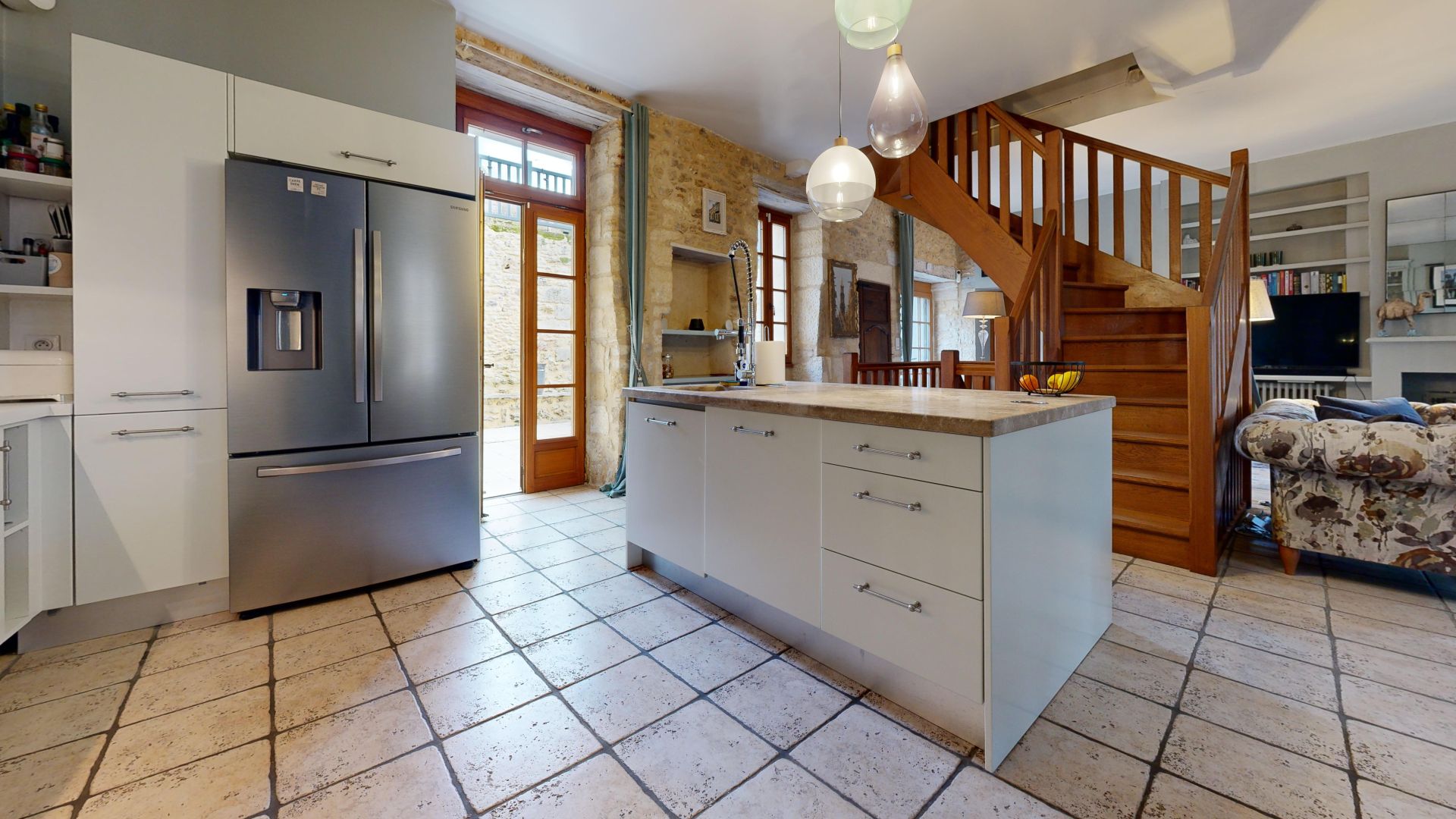 EXCLUSIVE LABEL PIERRES You will undoubtedly choose this house for its central location and proximity to shops, its comfort and easy maintenance, but even more so for its spacious rooms. In a quiet and authentic neighbourhood of Le Bugue, from the street through its generous entrance hall, three levels are available On the ground floor, bedroom and shower room, laundry room, boiler room, garage. On the garden level, there is a bright 66m² living room with a fitted and well equipped kitchen, dining room, lounge with fireplace and stove, and double French windows opening onto the terrace and garden. There is also a 32.50m² bedroom with en-suite bath and shower room plus a balcony. On the first floor, there is a stunning 64m² master suite with a master bedroom, sitting area, bathroom and dressing room, with frend doors opening onto the garden and swimming pool. A separate office (or guest room) is close to the garden. You will choose it because it is a charming residence that has undergone high-quality renovation, combining modern comfort with the authenticity of Périgord houses. But you will inevitably choose it because you will be seduced by its intimate, walled sun drenched garden, with several terraces around the swimming pool. All off the mains rooms in the house have large French windows giving access to the garden. A visit is a must !