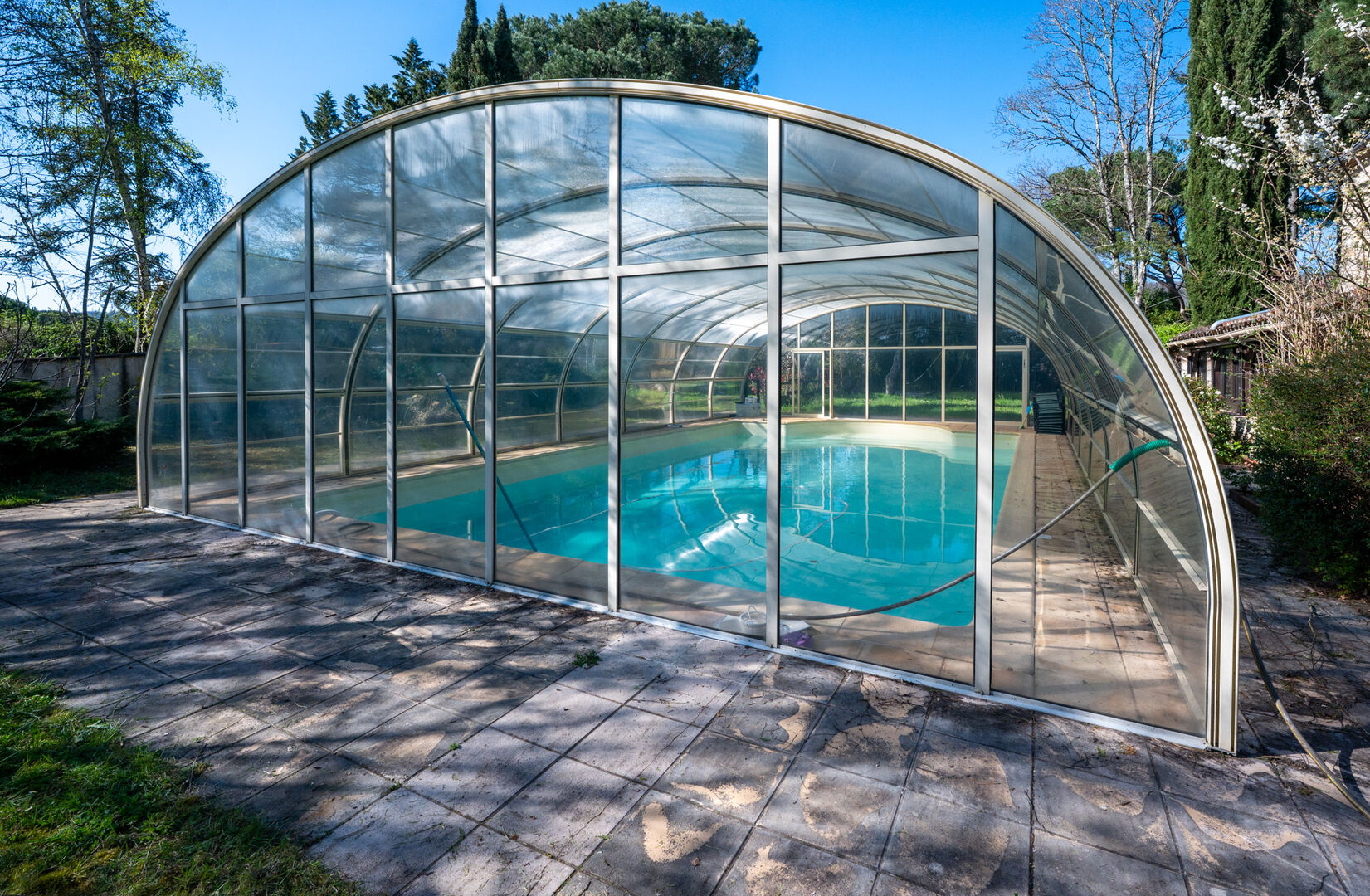 - Swimming Pool 12 x 8 chlorine, covered under dome, 10-year rein